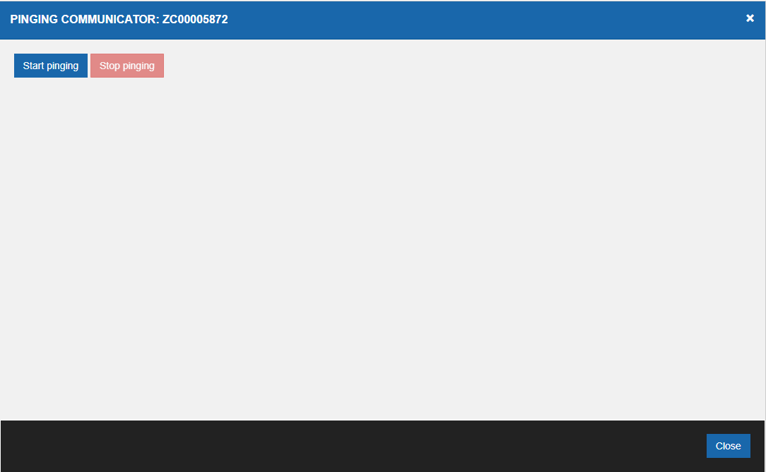 Click on 'Start pinging' , starts pinging communicator and shows the message shown below.