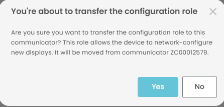- Click 'Transfer Configuration role' on the communicator/Range extender you want to transfer.