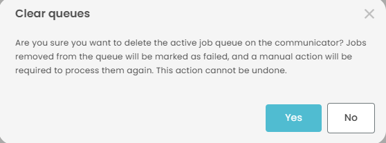 This action helps to send a command to the communicator and clears the active job queue that are running on the communicator.