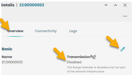 - Click 'Disable transmission' on the communicator/Range extender you want to disable.