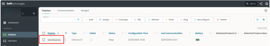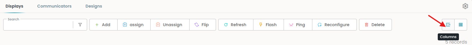 A new page opens with two tabs—Displays, Communicators with 'Displays' selected by default.