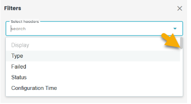 - Opens a 'Filters' slide-in panel featuring three tabs, as illustrated below.