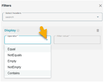 3.1.2.2 Select Operator- Click on the dropdown and select 'Contains' as shown below.