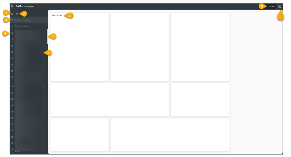 4. Company List: Accessible companies shown as blue clusters with vertical scroll (7).