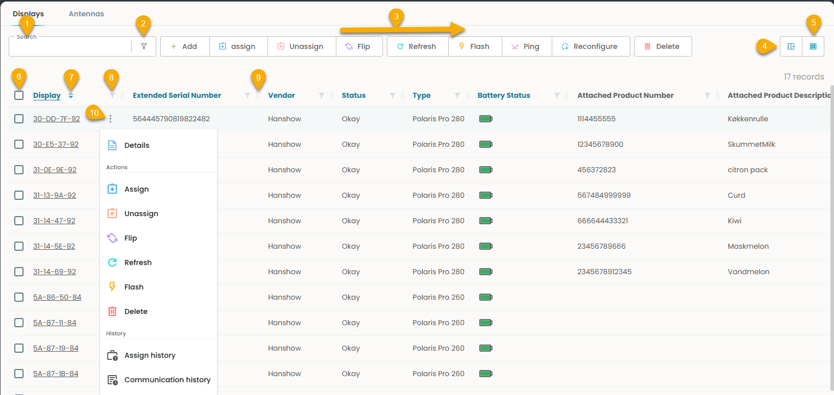 - Top Actions: Assign, Unassign, Flip, and Flash.